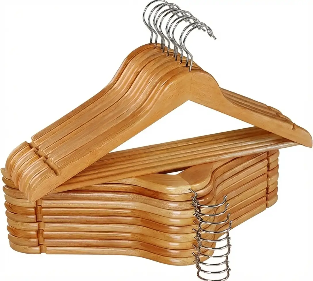 10-Pack Luxury Wooden Hangers with Smooth Finish & 360° Rotatable Hooks